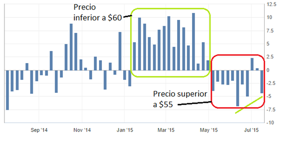 Esta sorpresa en los niveles de inventarios provocaría una caída importante en los precios actuales, que posteriormente llevaría a acumular más inventarios. La próxima semana los niveles de inventarios tendrían que ser superior a los de la presente semana.